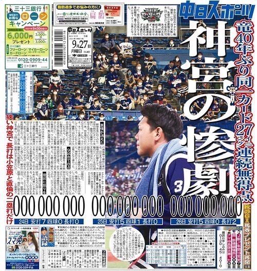 中日が村上を目覚めさせて3タテやな