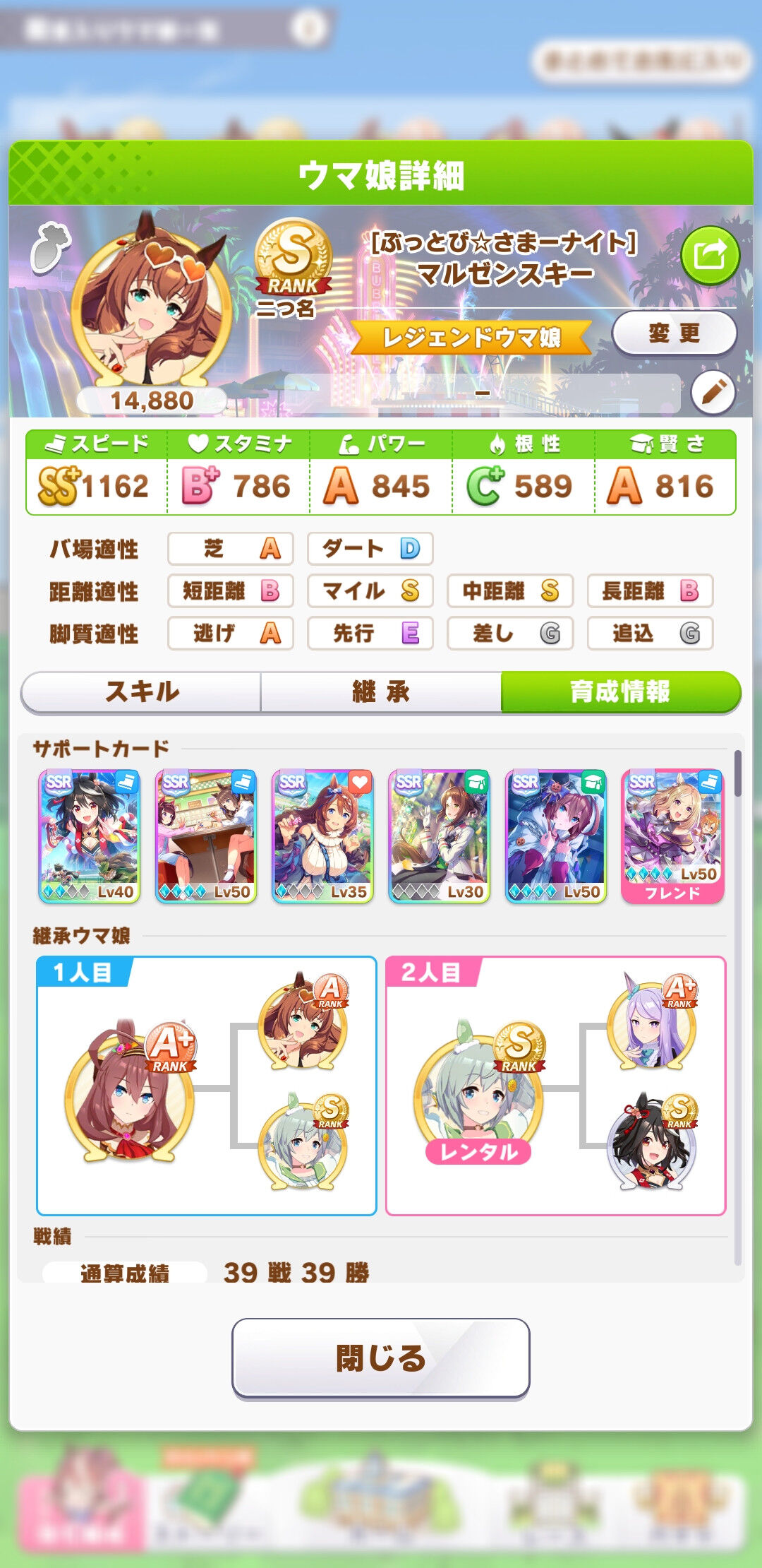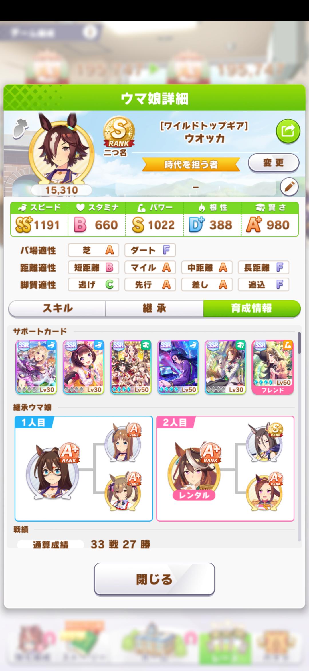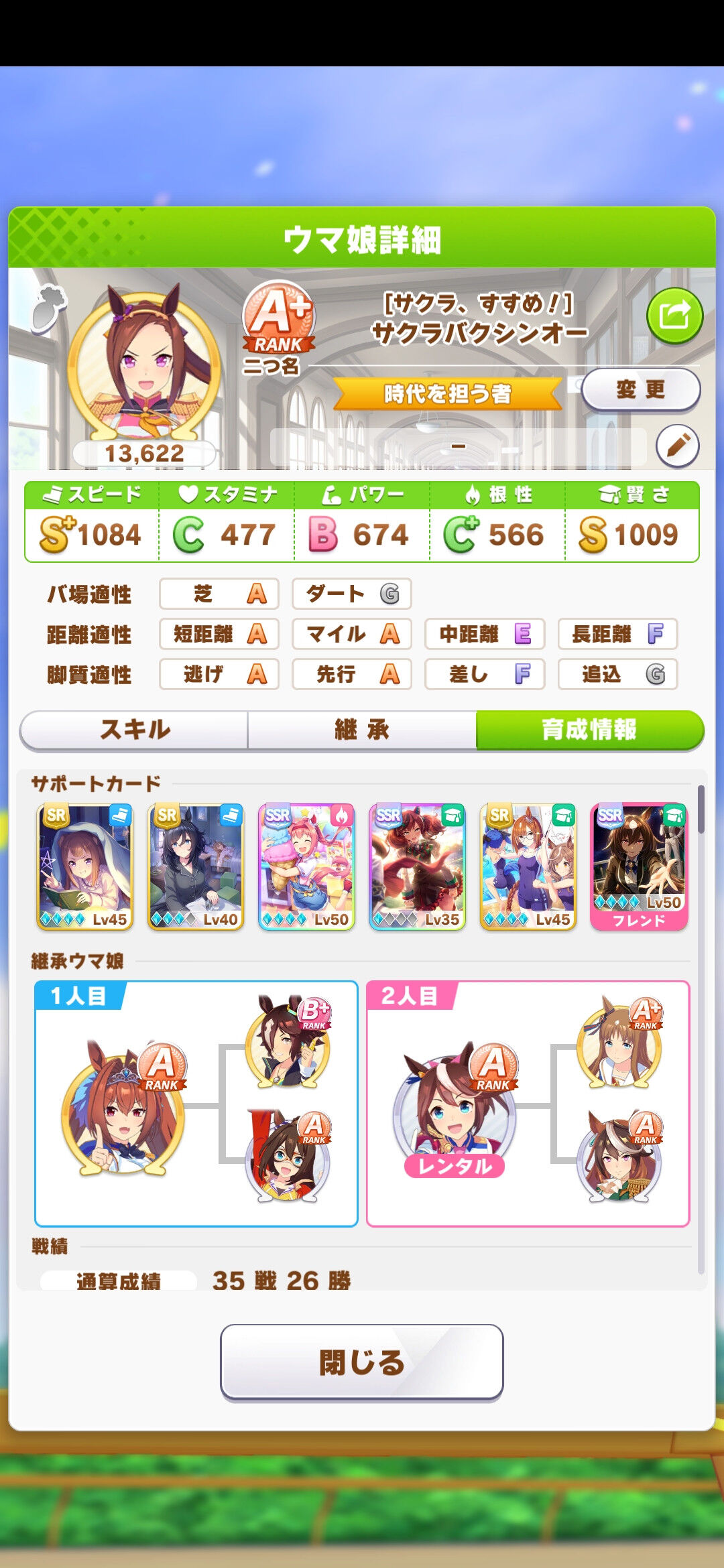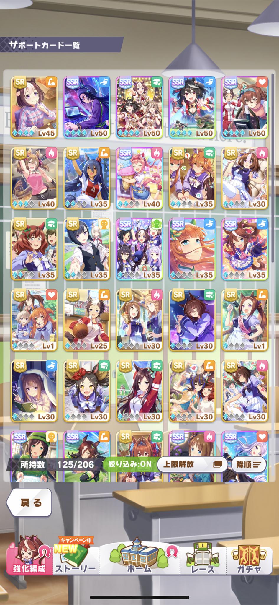リリースから入れてたけどキタサン完凸リセマラして飽きてから1thで復帰したからサポカがゴミすぎる