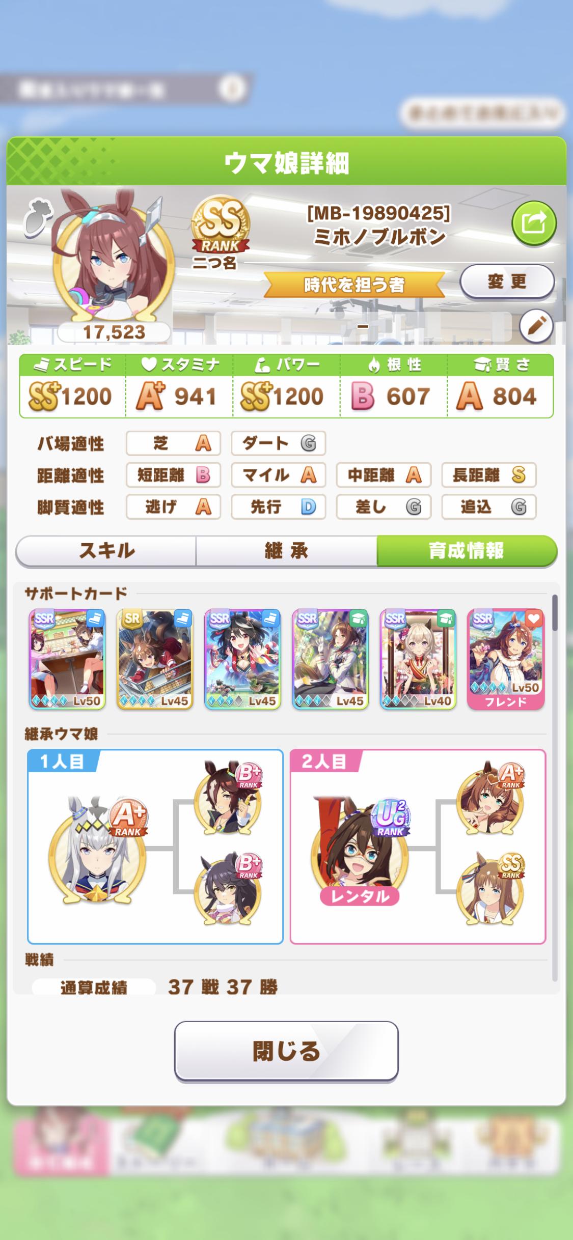 リリースでキタサン完凸してから1年も放置しとったんや…