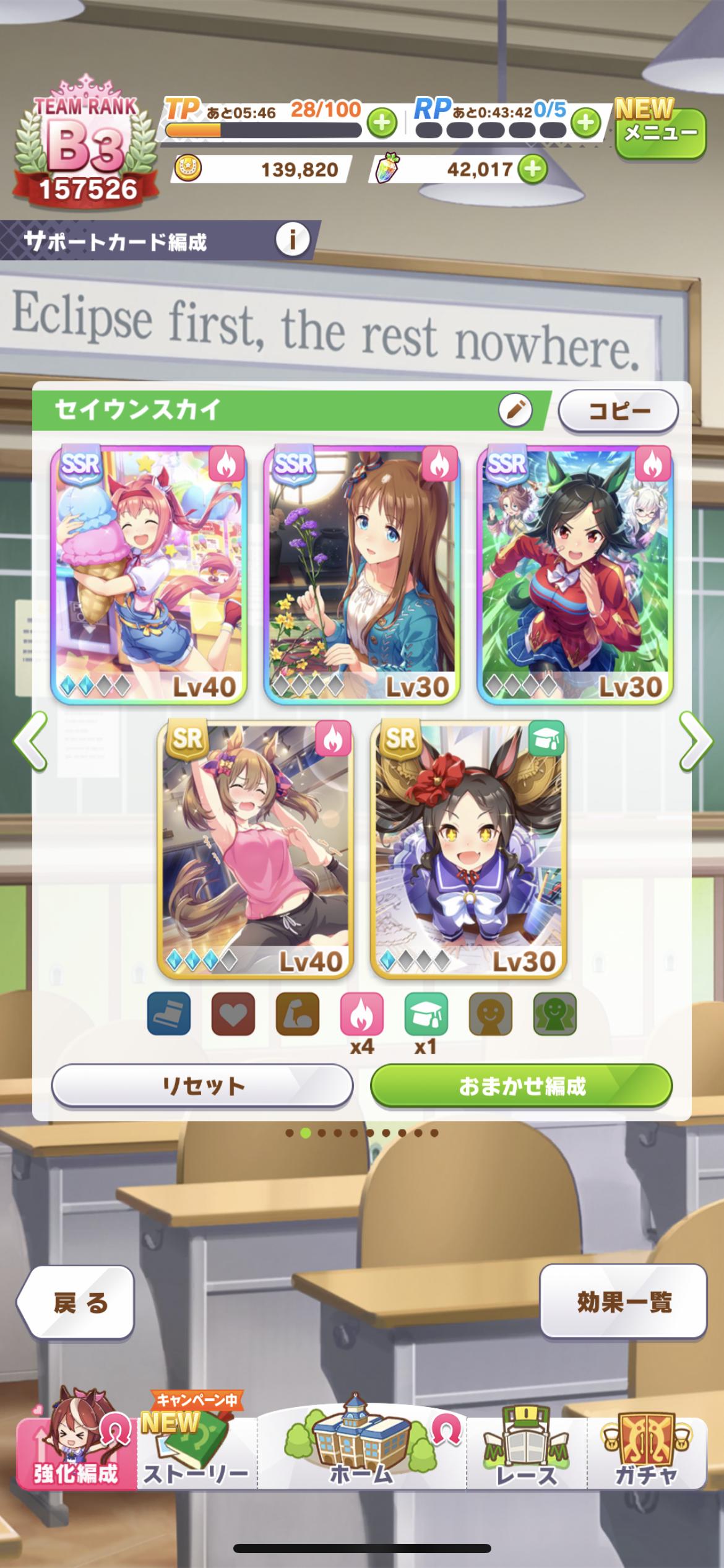 ところでサポカの編成がキャラに対して合ってないのが気になるわ