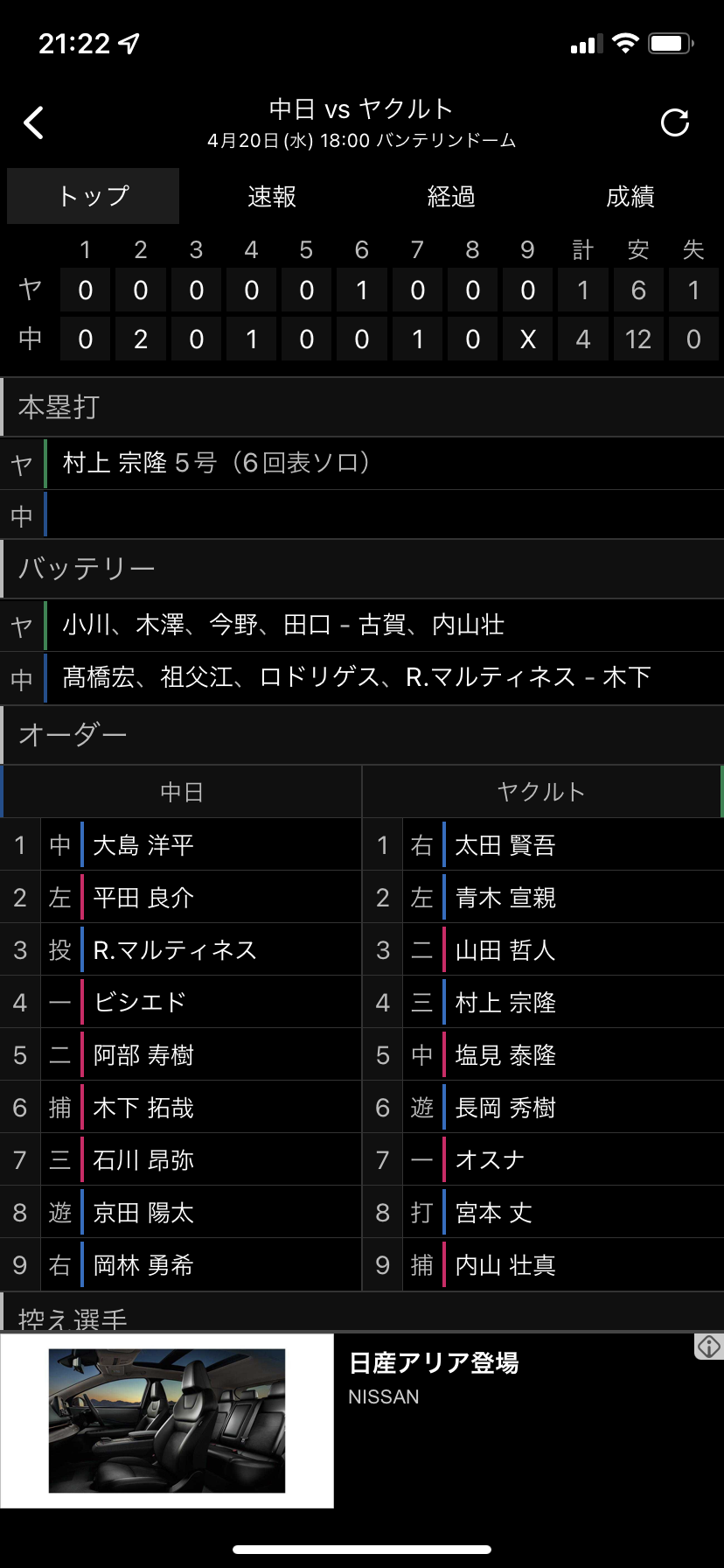 778: 中4-1ヤ(8回裏) 22/04/20(水) 21:08:23 ID:Rh4C