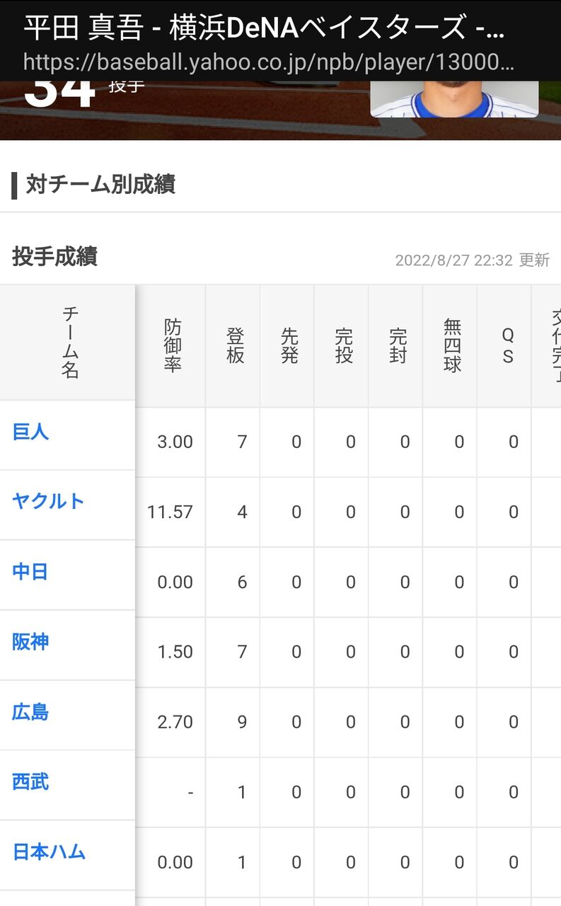 福谷さんなんだかんだ7回91球無四球自責3でQS