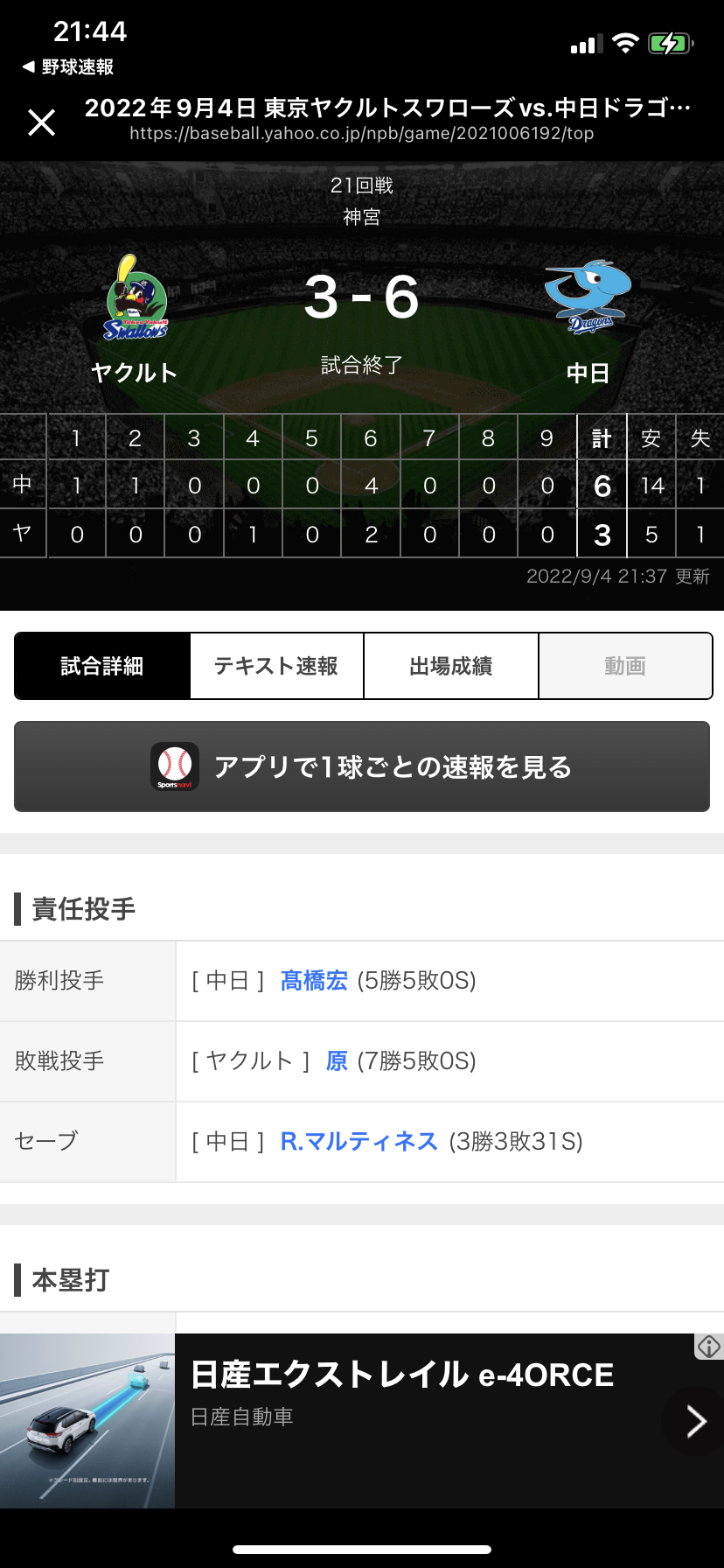 21: ヤ3-6中(9回裏) 22/09/04(日) 21:31:13 ID:kD0r