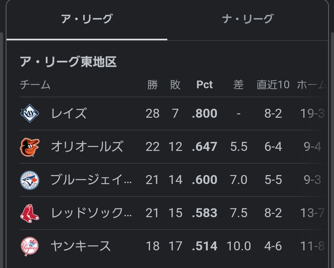 15位ヤンキース -1.0 ヒックスops.374 カブレラops.749
