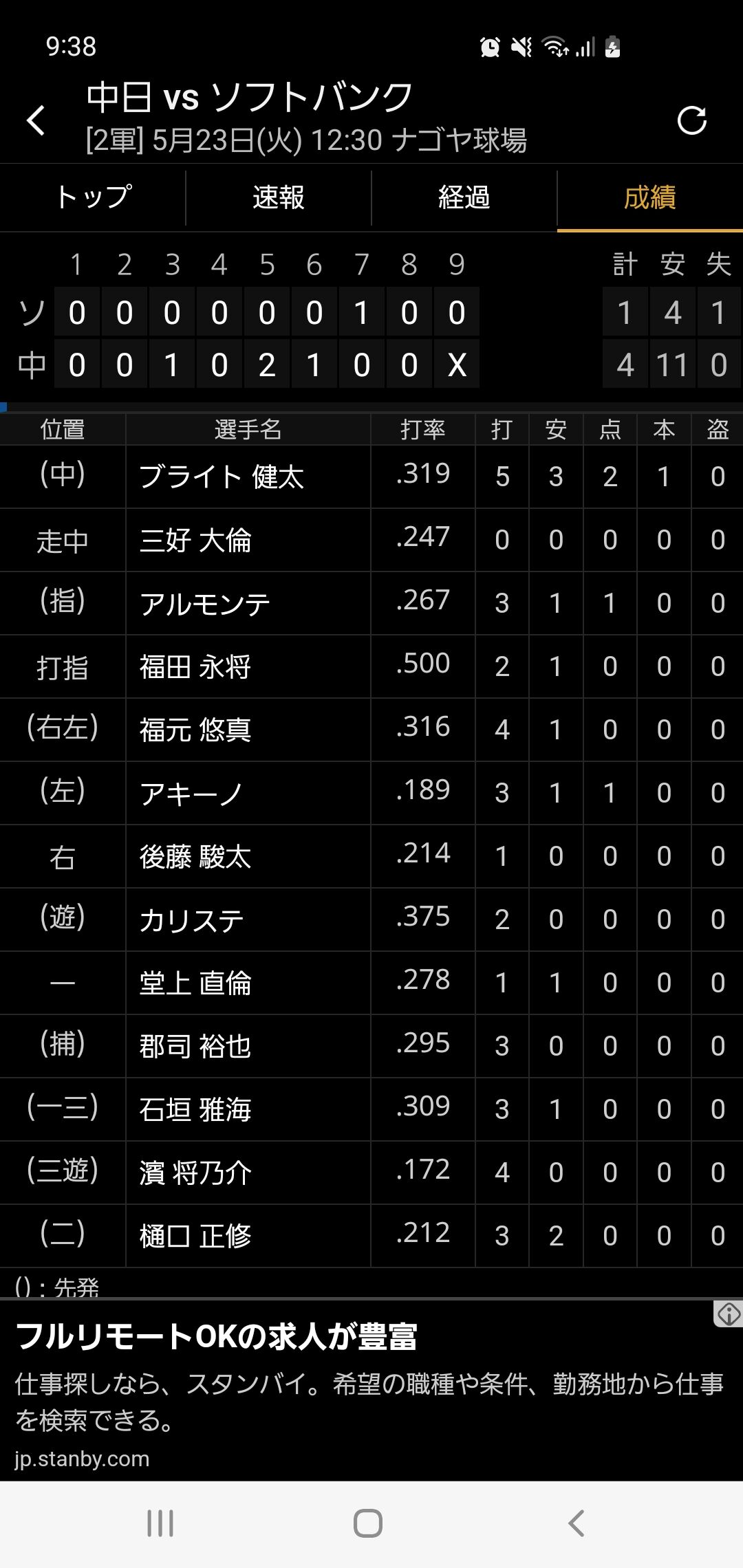 今日アレなら岡林下げてブライト上げろの声やったやろな