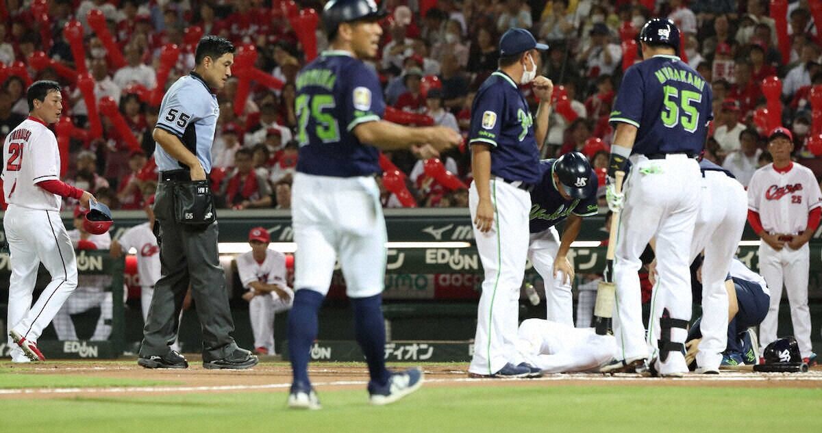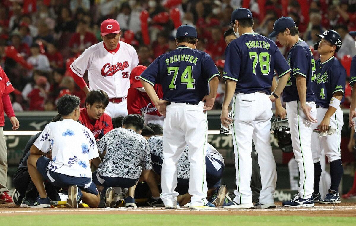 倒れ込んだ青木に高津監督はもちろん、広島の新井監督も駆け寄り心配そうな表情を浮かべた。担架で球場を去る青木に対しては、無事を祈る広島ファンからも温かい拍手が送られる場面もあった。