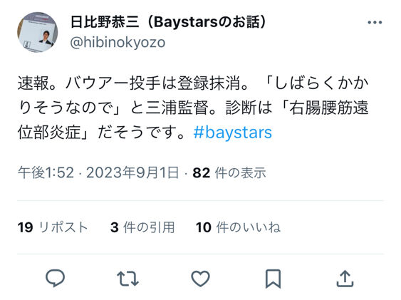 阪神で例えると大山が抹消されるぐらいの衝撃か