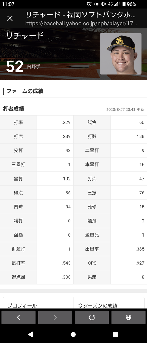 2023年08月28日 【ソフトバンク】リチャード .132(53-7)0本 1打点 OPS.315←彼に対する率直な感想【マー君にイキり一触即発事件】 タグ :#リチャード#ソフトバンクホークス#育成#ロマン砲? コメント数:1 コメント カテゴリ:日常 by とし 記事全文を読む